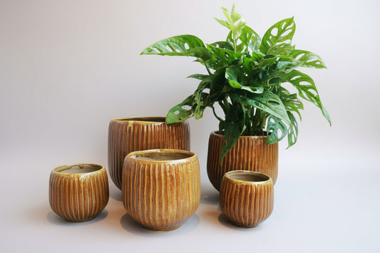 Sold outBrown pot with stripes